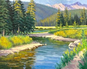 “As an impressionist landscape painter, I find my inspiration in the beauty of Colorado’s mountain streams and Southwest skies. When I paint, I try to convey both the visual essence of the scenery and my emotional connection with the land. I want to invite the viewer to experience the same peace and contentment I feel when painting, and possibly, to find their own story within the landscape.